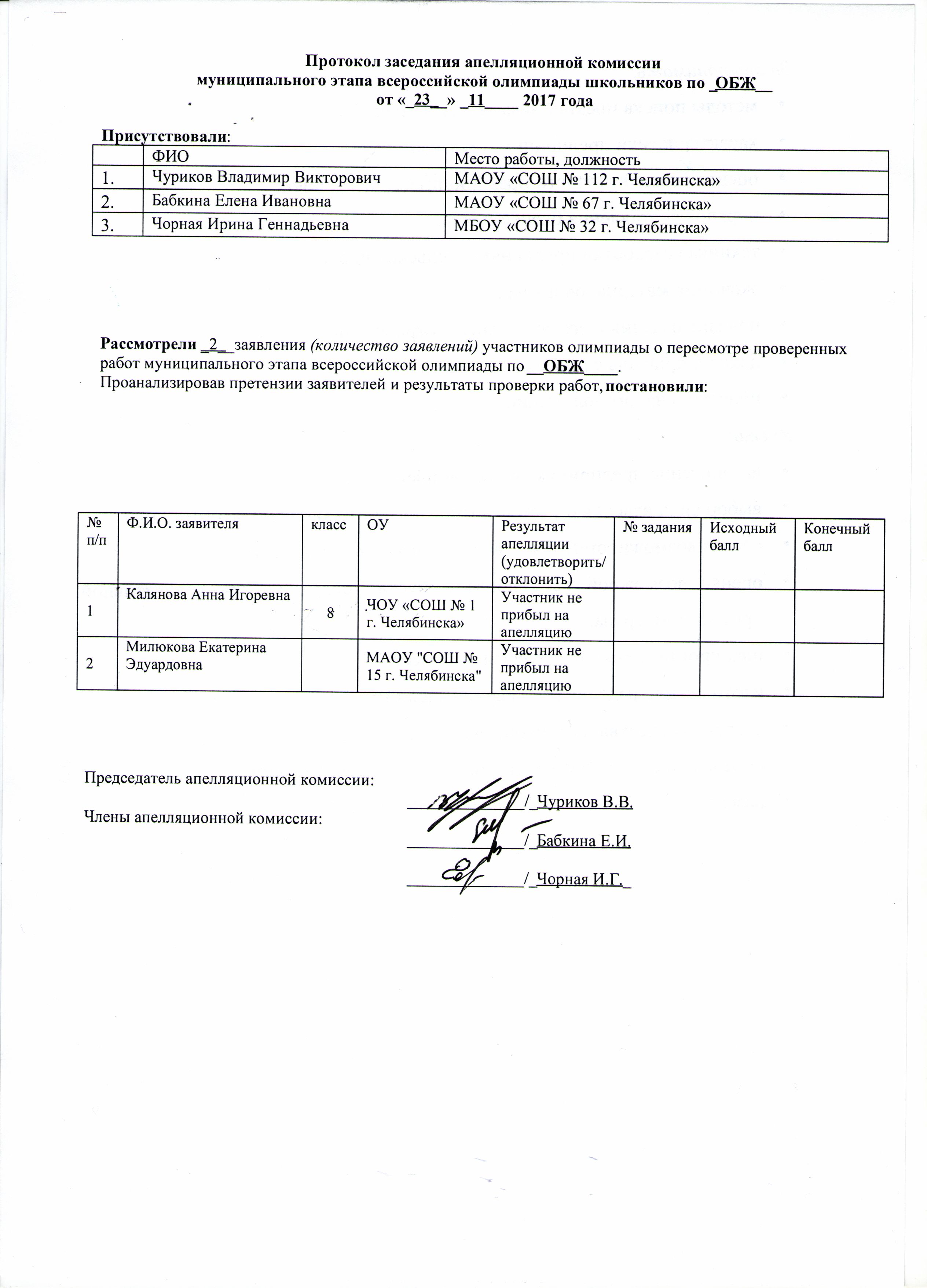 Приказ Комитета по делам образования города Челябинска по итогам олимпиады (961.7 Кбайт) Протокол апелляции (542.3 Кбайт) Приказ по итогам муниципального этапа (156.5 Кбайт) |