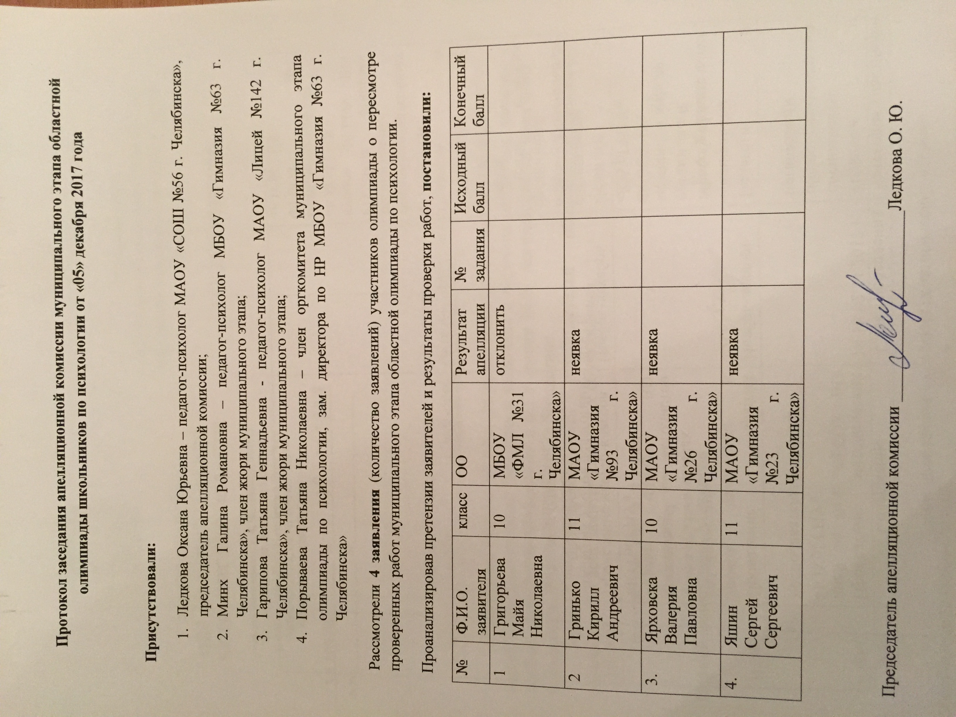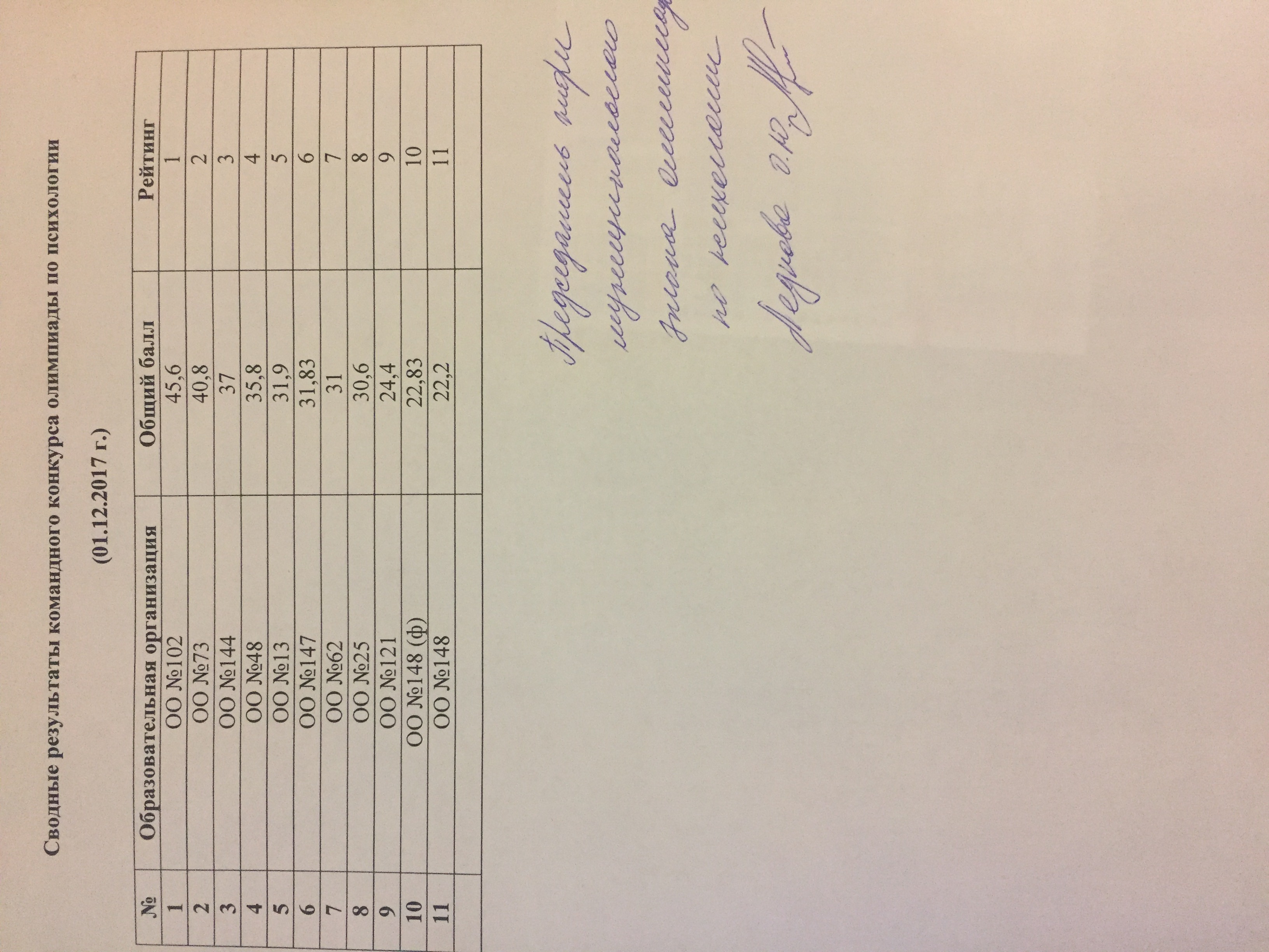 Приказ об утверждении результатов муниципального этапа областной олимпиады школьников по психологии