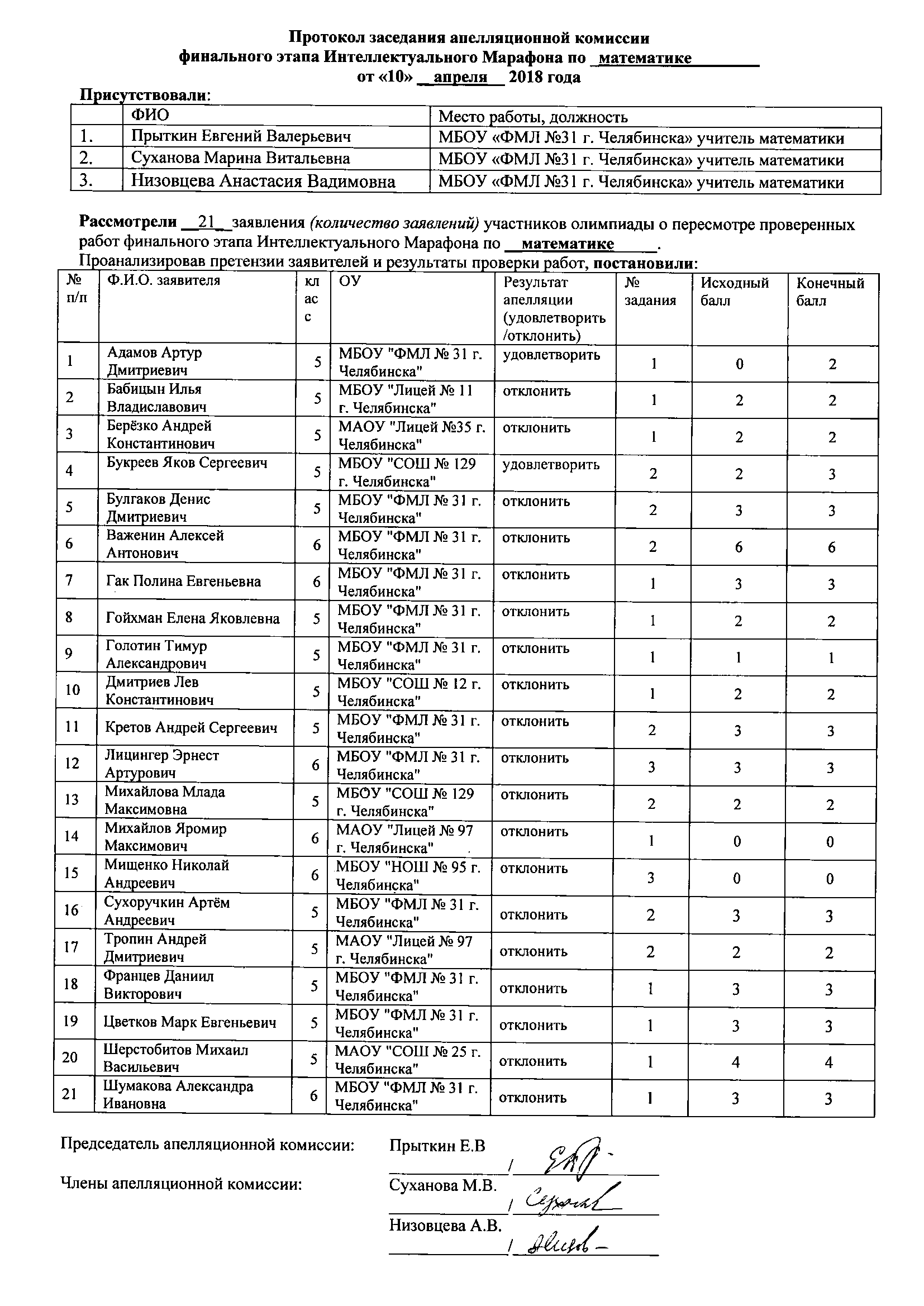 Заявки на апелляциюПринимаются до 09.04.2018 15:00