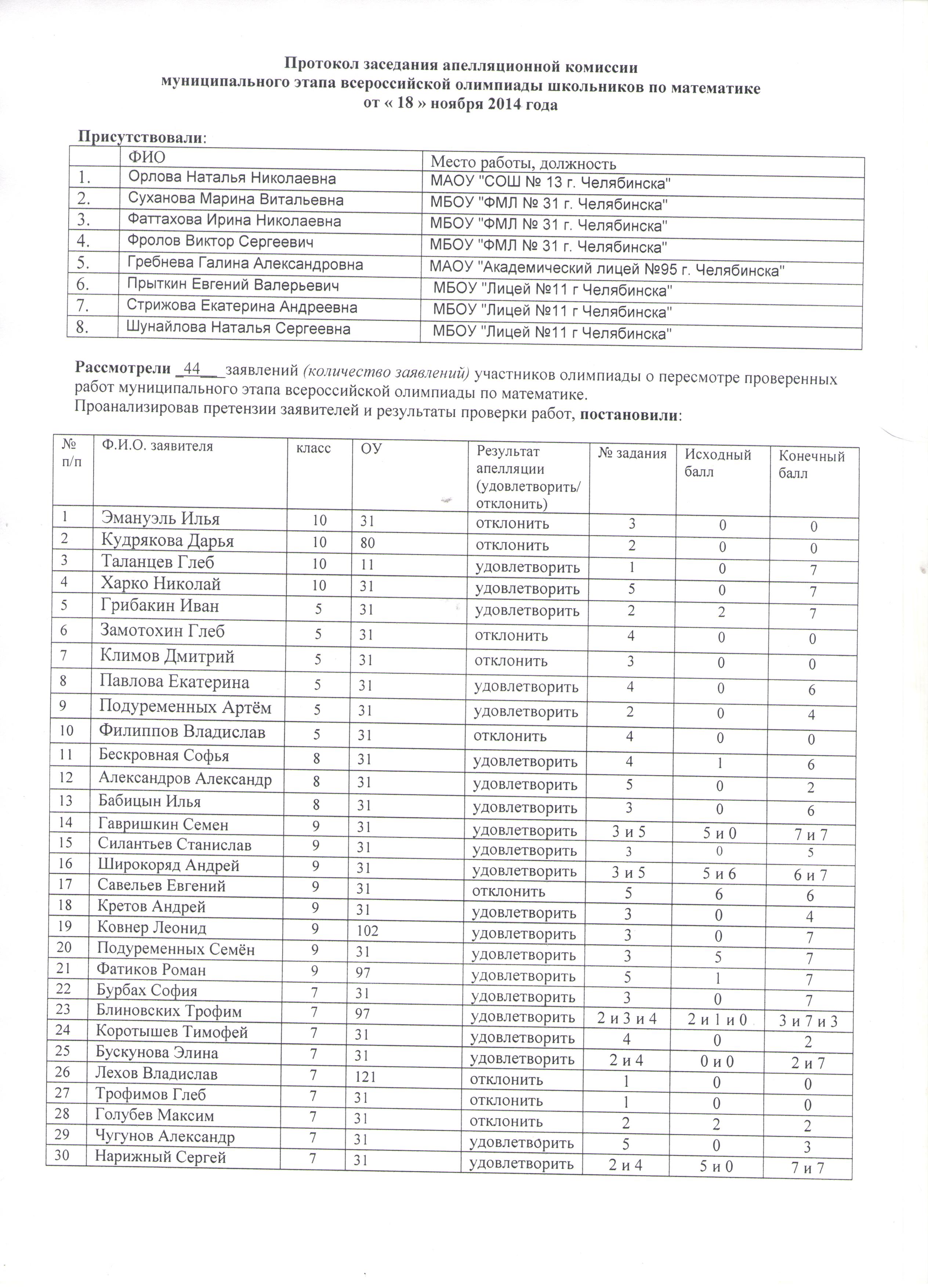 Состав апелляционной комиссии: