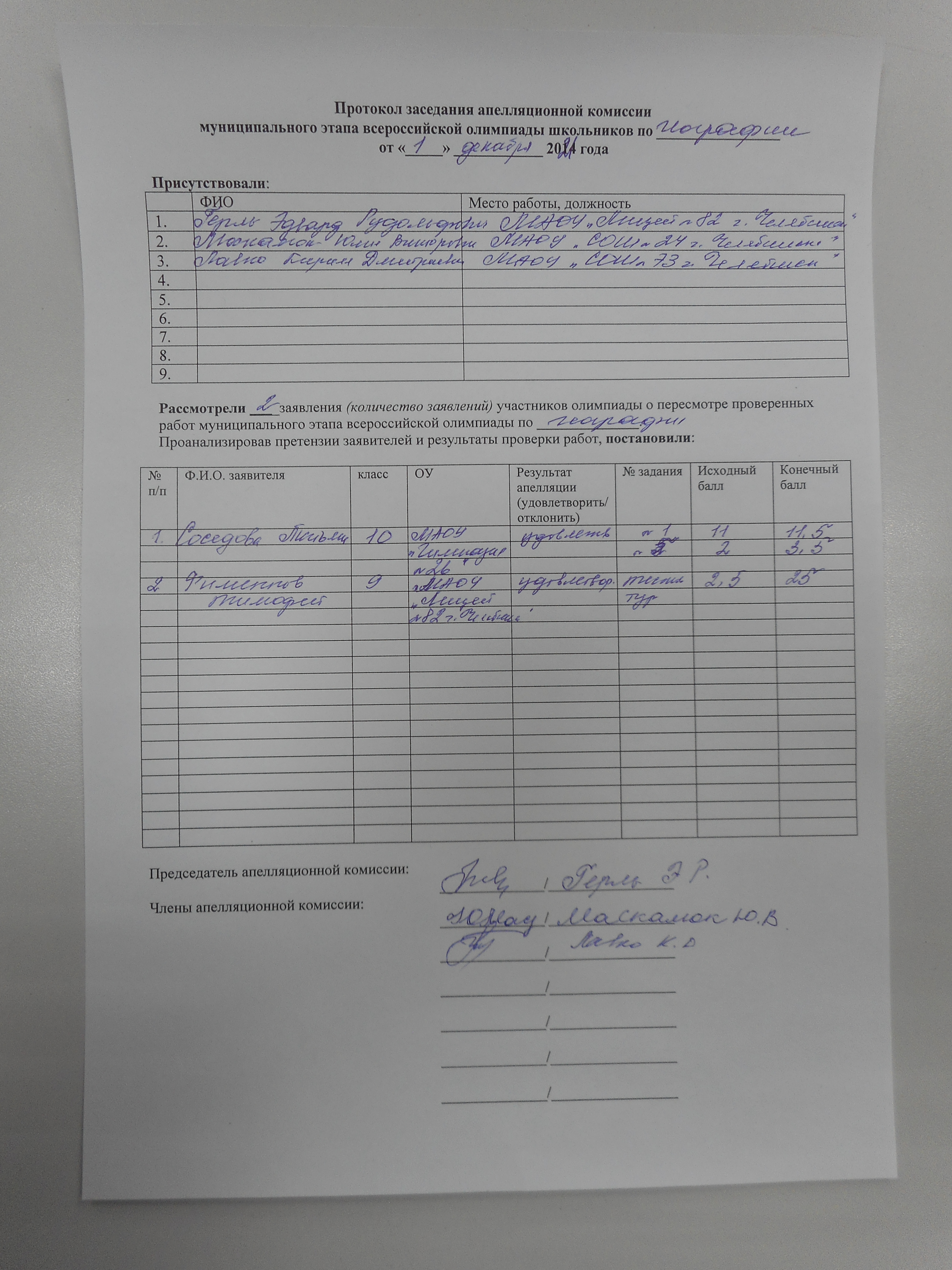 В местах проведения Олимпиады вправе присутствовать представители Комитета по делам образования г. Челябинска, муниципальной предметно-методической комиссии по географии, члены жюри муниципального этапа Олимпиады, должностные лица Министерства образования и науки Челябинской области, а также граждане, аккредитованные в качестве общественных наблюдателей в порядке, установленном Министерством образования и науки Российской Федерации.