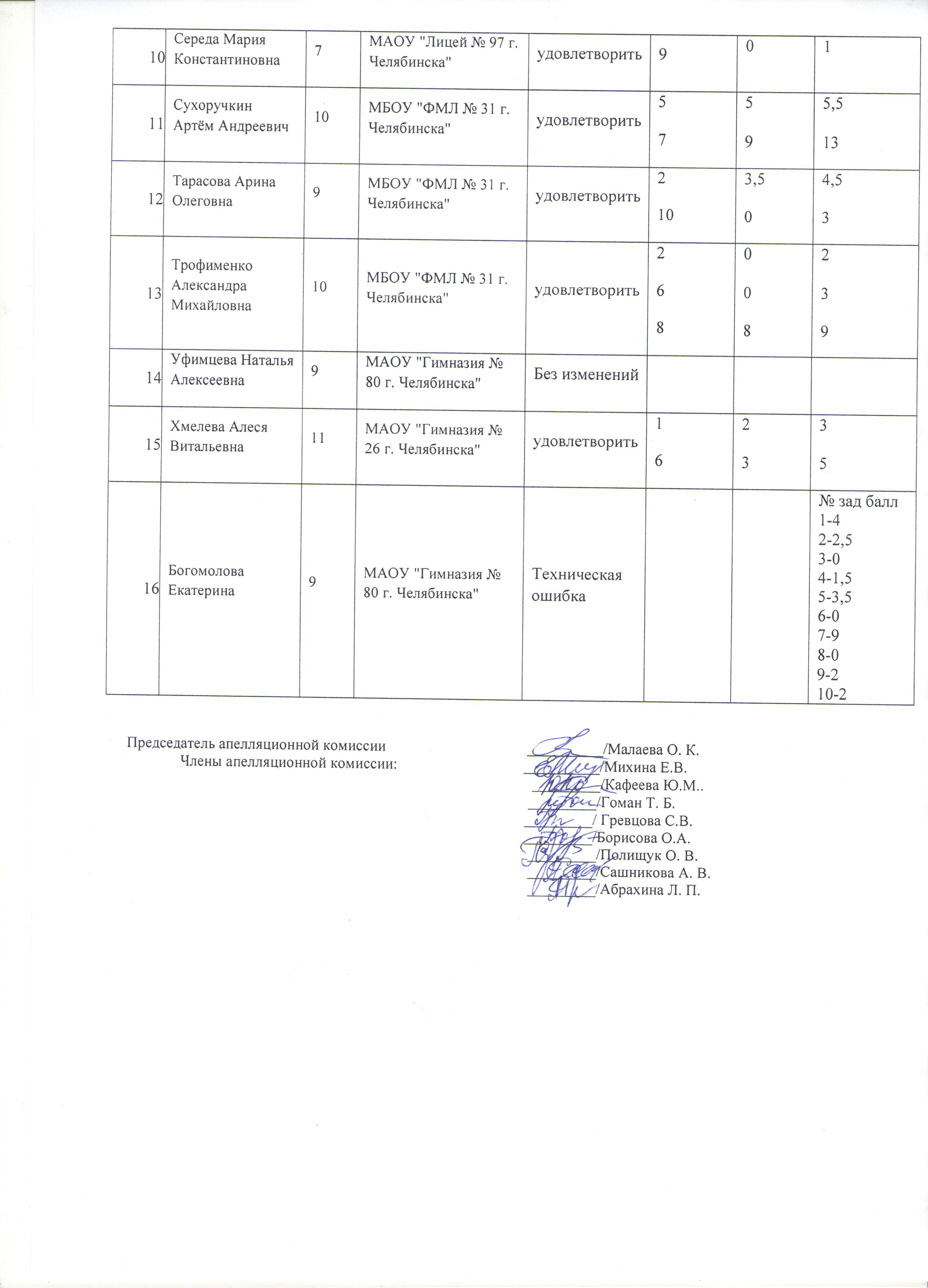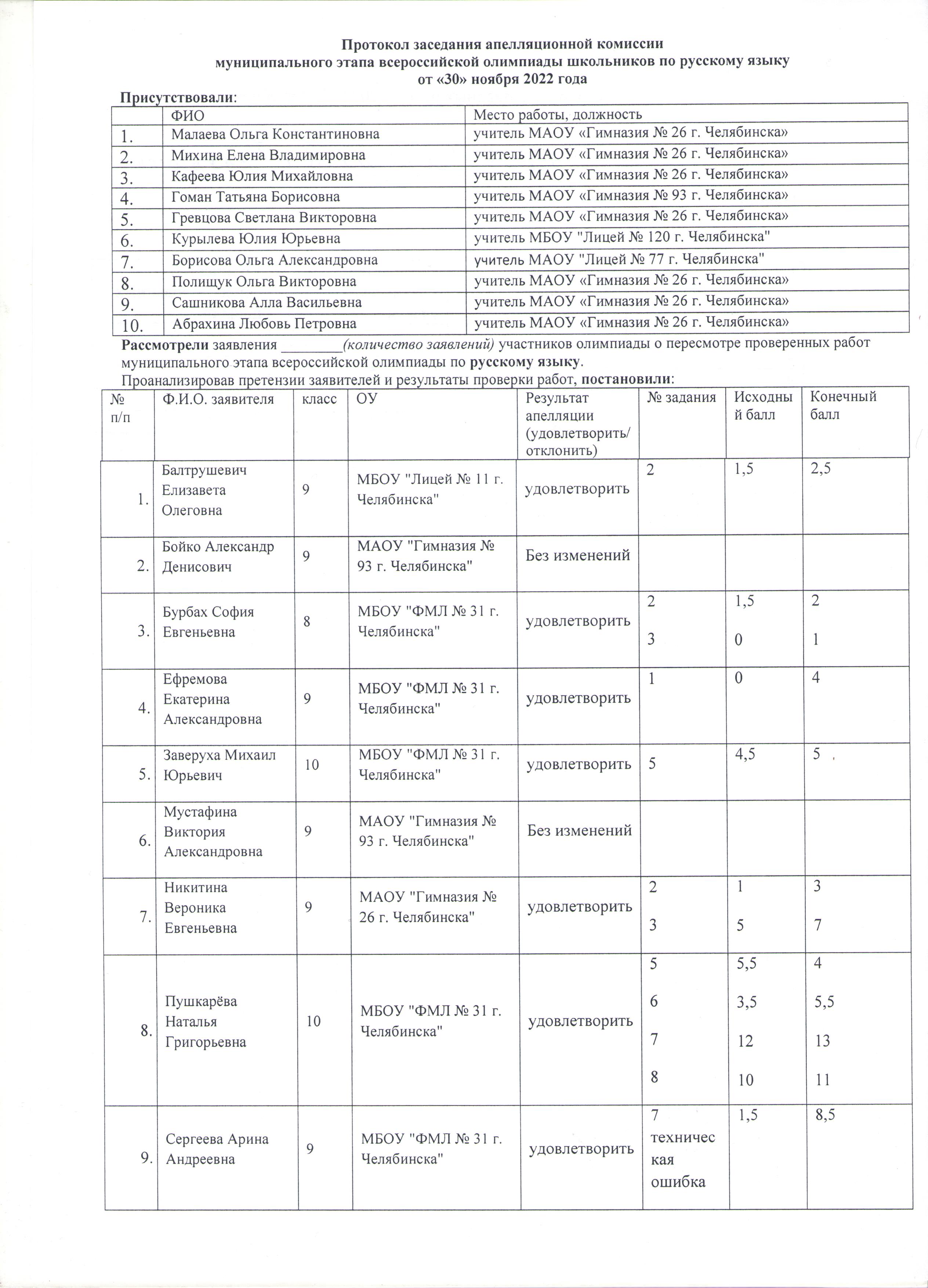 Апелляция состоится 30 ноября с 15 до16 часов в МАОУ «Гимназия № 26 г. Челябинска» по адресу: ул. Пионерская 10-а, кабинет № 25.