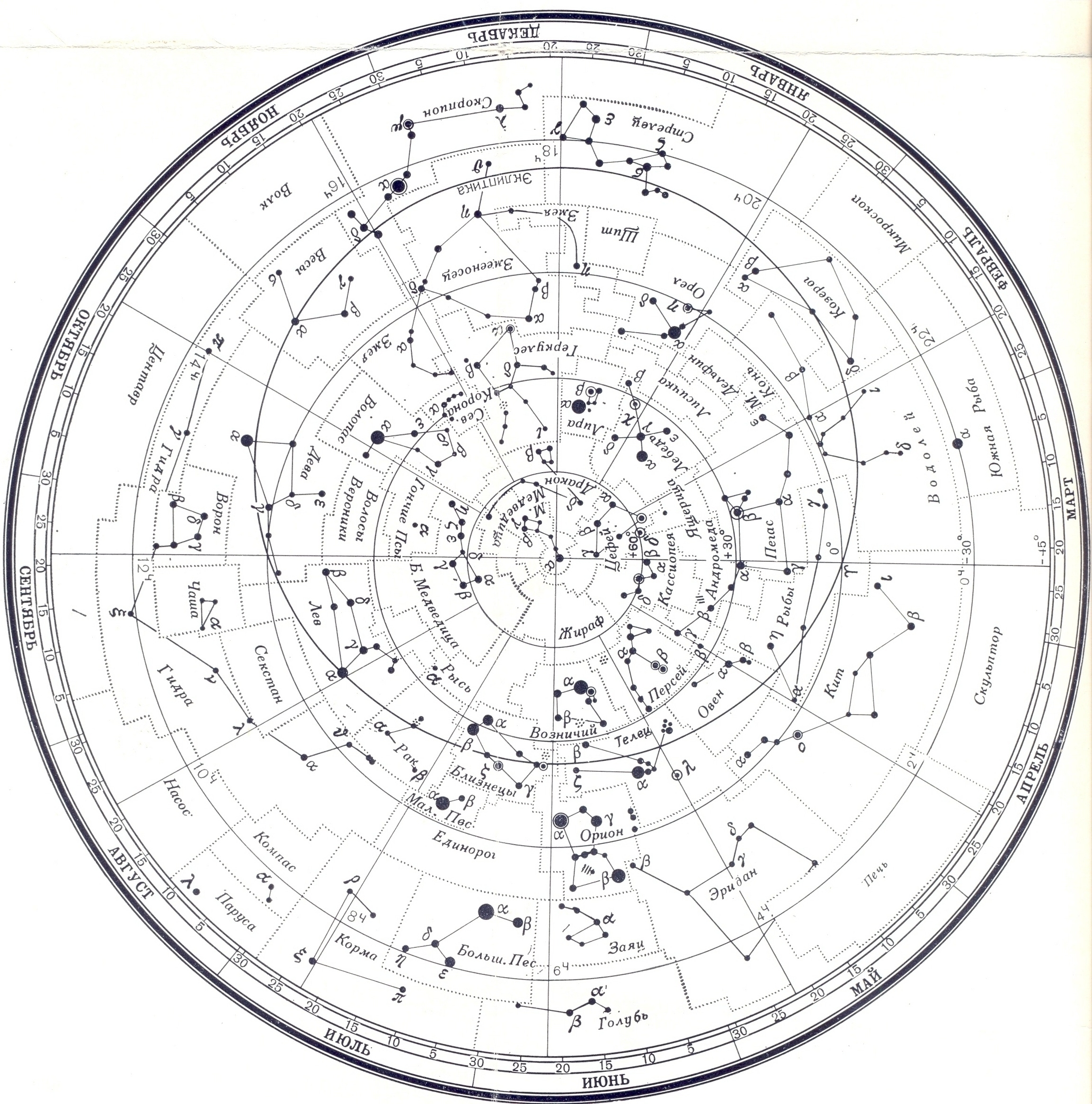 Оптические свойства атмосфер планет и межзвездной среды. Рассеяние и поглощение света в атмосфере Земли, в межпланетной и межзвездной среде, зависимость поглощения от длины волны. Атмосферная рефракция. Представление о внутреннем строении и источниках энергии Солнца и звезд. Ядерные источники энергии звезд, запасы ядерной энергии. Выделение энергии при термоядерных реакциях. Образование химических элементов в недрах звезд различных типов, в сверхновых звездах (качественно). Классификация и эволюция звезд. Диаграмма «цвет-светимость». Звезды главной последовательности, гиганты, сверхгиганты. Время жизни звезд различной массы. Сверхновые звезды. Поздние стадии эволюции звезд: белые карлики, нейтронные звезды, черные дыры. Гравитационный радиус. Пульсары. Межзвездная среда. Представление о распределении газа и пыли в пространстве. Плотность, температура и химический состав межзвездной среды. Газовые и диффузные туманности. Звездообразование. Движение звезд в пространстве. Эффект Доплера. Лучевая скорость звезд и принципы ее измерения. Апекс. Электромагнитные волны. Скорость света. Различные диапазоны электромагнитных волн. Видимый свет, длины волн и частоты видимого света. Радиоволны. Спектры звезд. Основы спектрального анализа. Линии поглощения в спектрах звезд, спектральная классификация. Атмосферы Солнца и звезд. Фотосфера и хромосфера Солнца. Представление о спектрах солнечной короны, планетарных и диффузных туманностей, полярных сияний. Строение и типы галактик. Наша Галактика. Ближайшие галактики. Расстояние до ближайших галактик. Состав галактик и их физические характеристики. Определение расстояний до галактик. Закон Хаббла. Скопления галактик. Приемники излучения и методы наблюдений. Элементарные сведения о современных методах фотометрии и спектроскопии. Фотоумножители, ПЗС-матрицы. Использование светофильтров. Прием радиоволн. Угловое разрешение радиотелескопов и радиоинтерферометров. Освоение околоземного пространства и ближайшего космоса. Знаменитые ученые – астрономы, изменившие представления о мире. Подвижная карта звездного неба (1.7 Мбайт) Накладной круг карты звездного неба (1.7 Мбайт) |