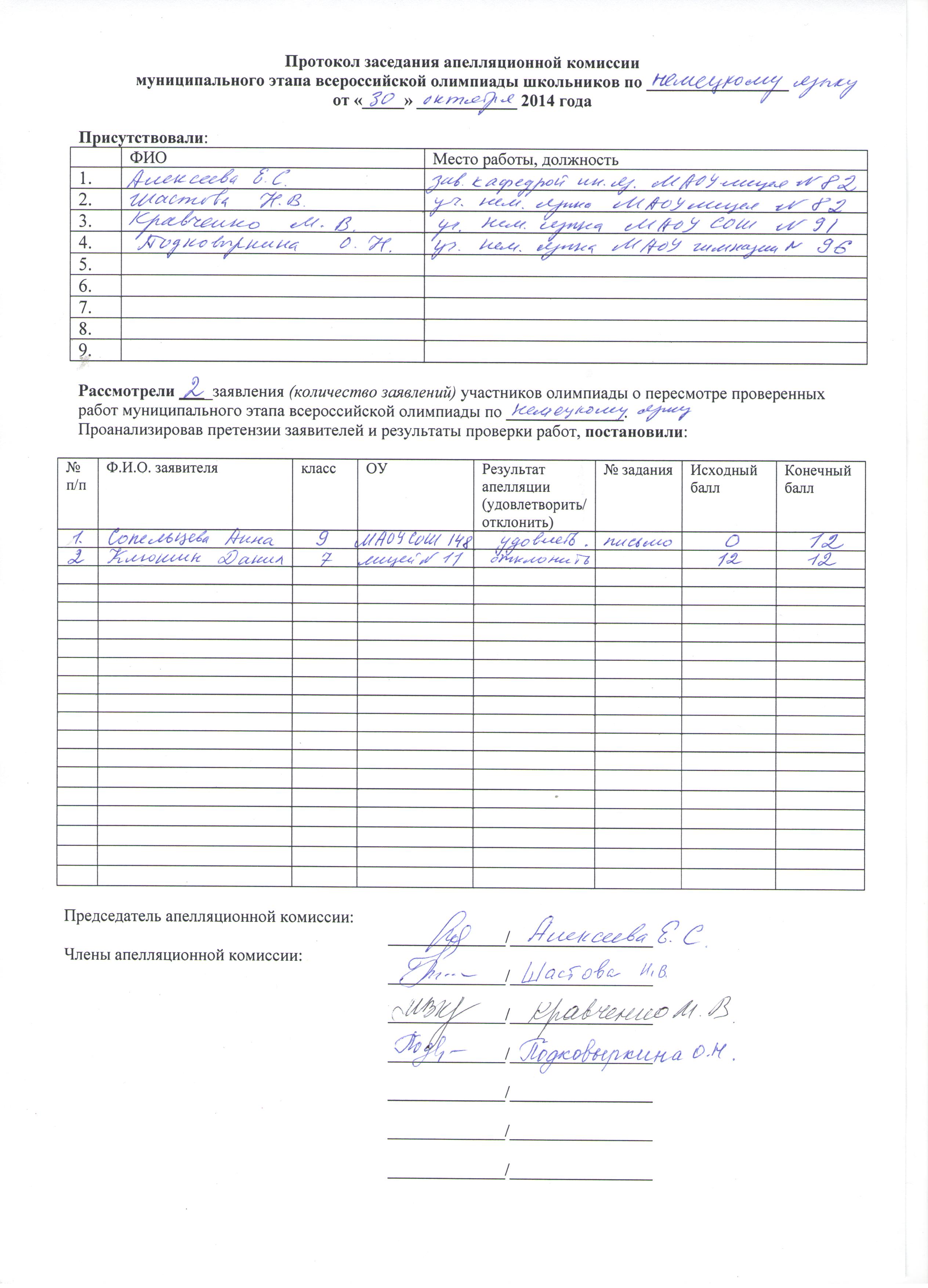 Апелляционная комиссия будет работать 30.10.2014 в 15 часов по адресу: улица Мира, 46, гимназия № 96, аудитория № 216.