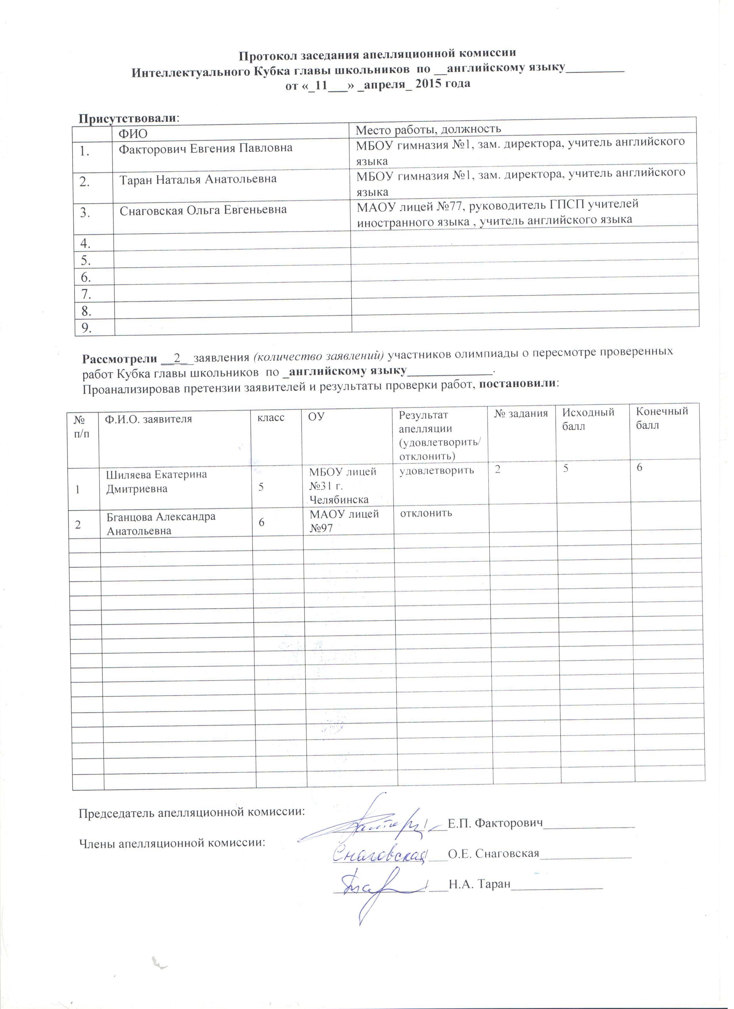 АПЕЛЛЯЦИЯ РАБОТ БУДЕТ ПРОИСХОДИТЬ 11 апреля с 13.00 до 14.00 в МБОУ гимназия 1 (ул.Красная,59). ЗАЯВЛЕНИЕ НА АПЕЛЛЯЦИЮ ПОДАЮТСЯ ЧЕРЕЗ СПЕЦИАЛЬНУЮ ФОРМУ, РАСПОЛОЖЕННУЮ ВНИЗУ СТРАНИЦЫ.