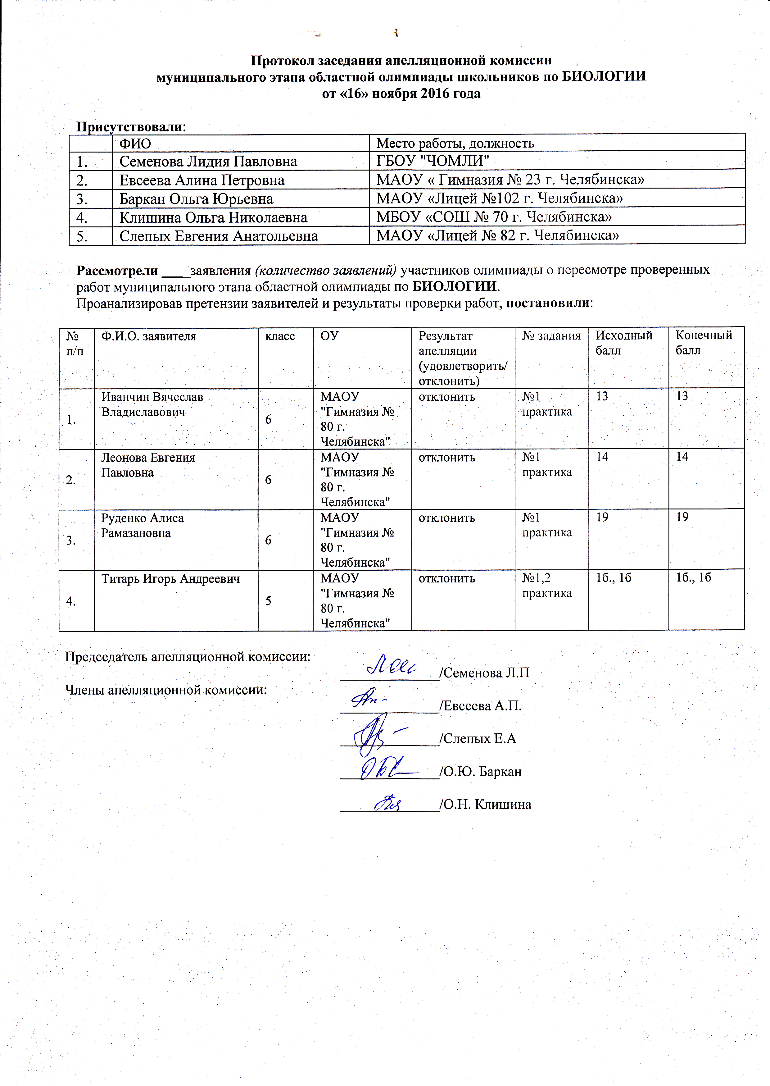 Апелляция по биологии состоится 16.11.2016 в МАОУ «Лицей №102 г. Челябинска» с 15:00 до 16:00 в кабинете № 102